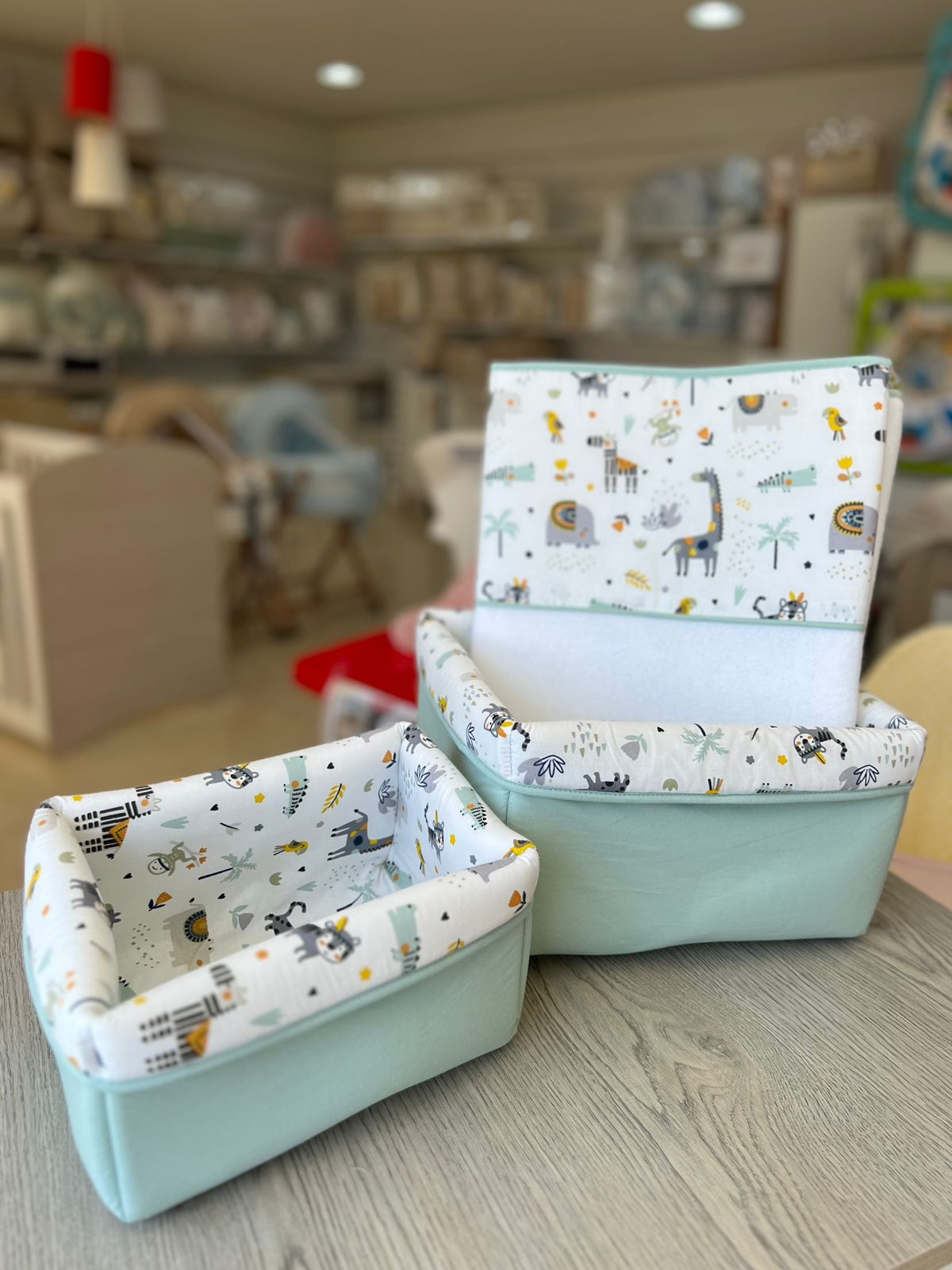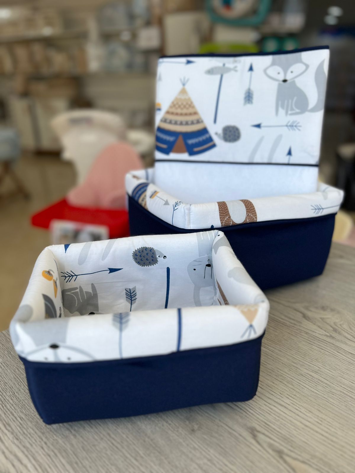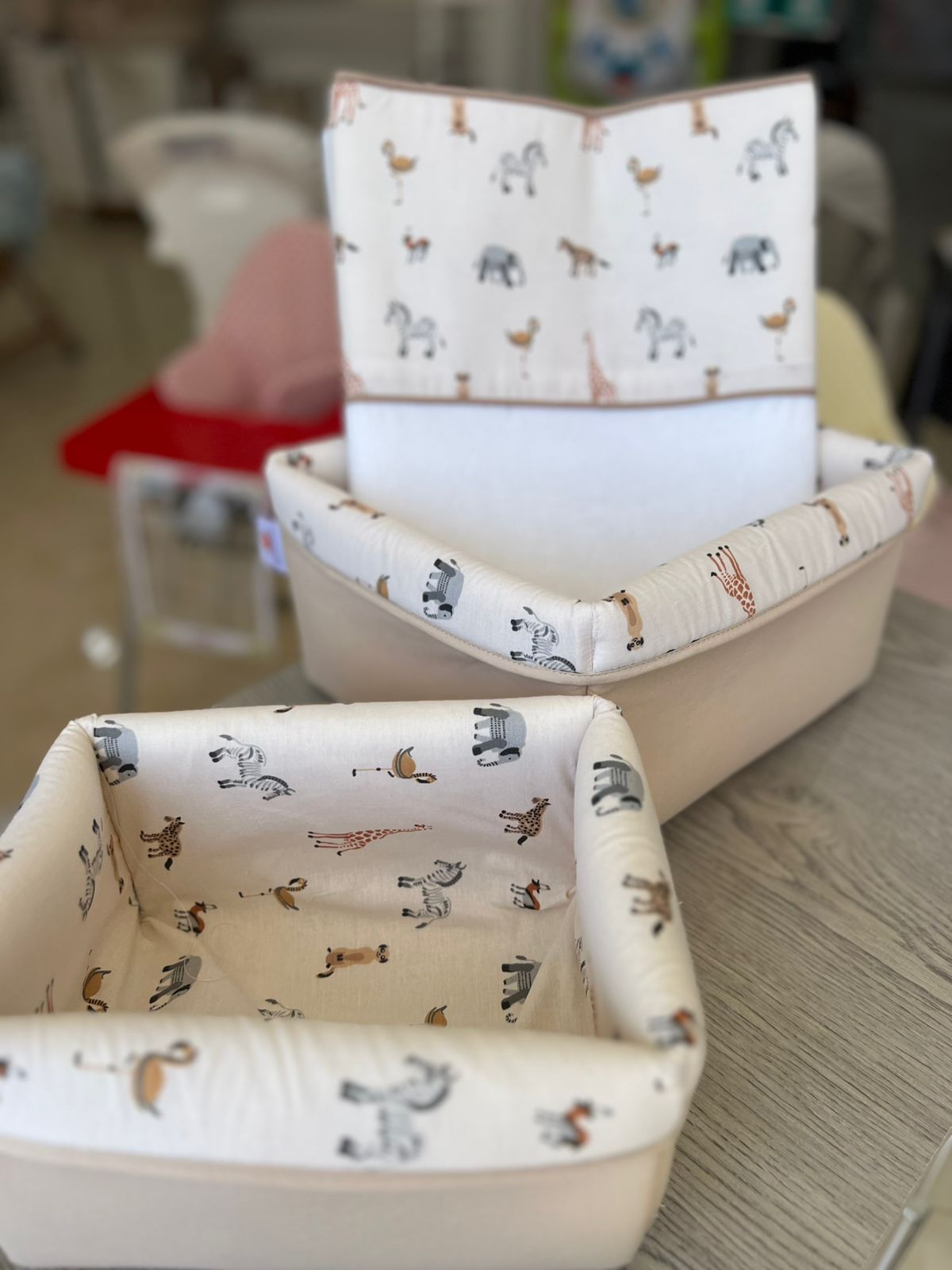 Un panier de rangement au tissu extérieur doux et à l’intérieur imprimé d’adorables . Sa structure souple mais stable en fait un accessoire idéal pour ranger couches, produits de soin ou petits vêtements.Panier rectangulaire: