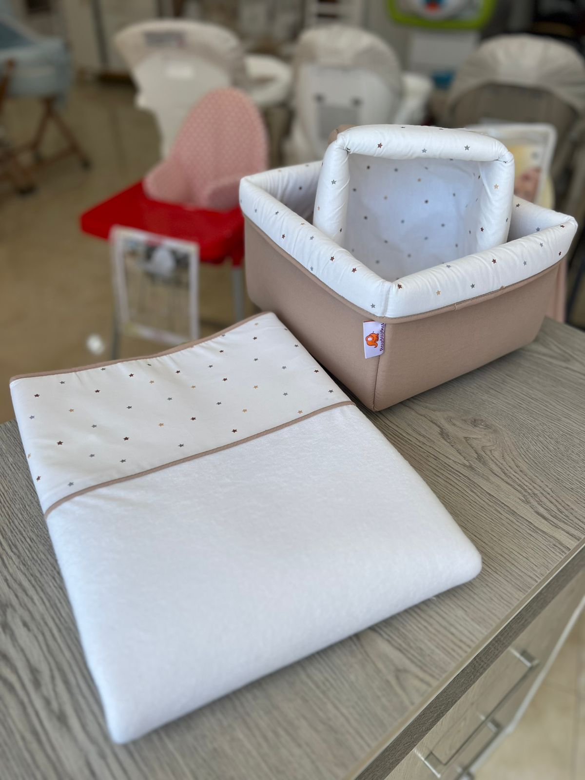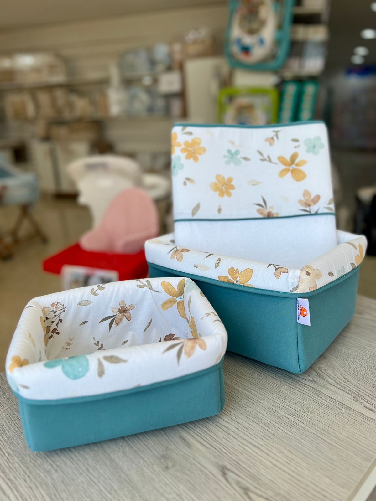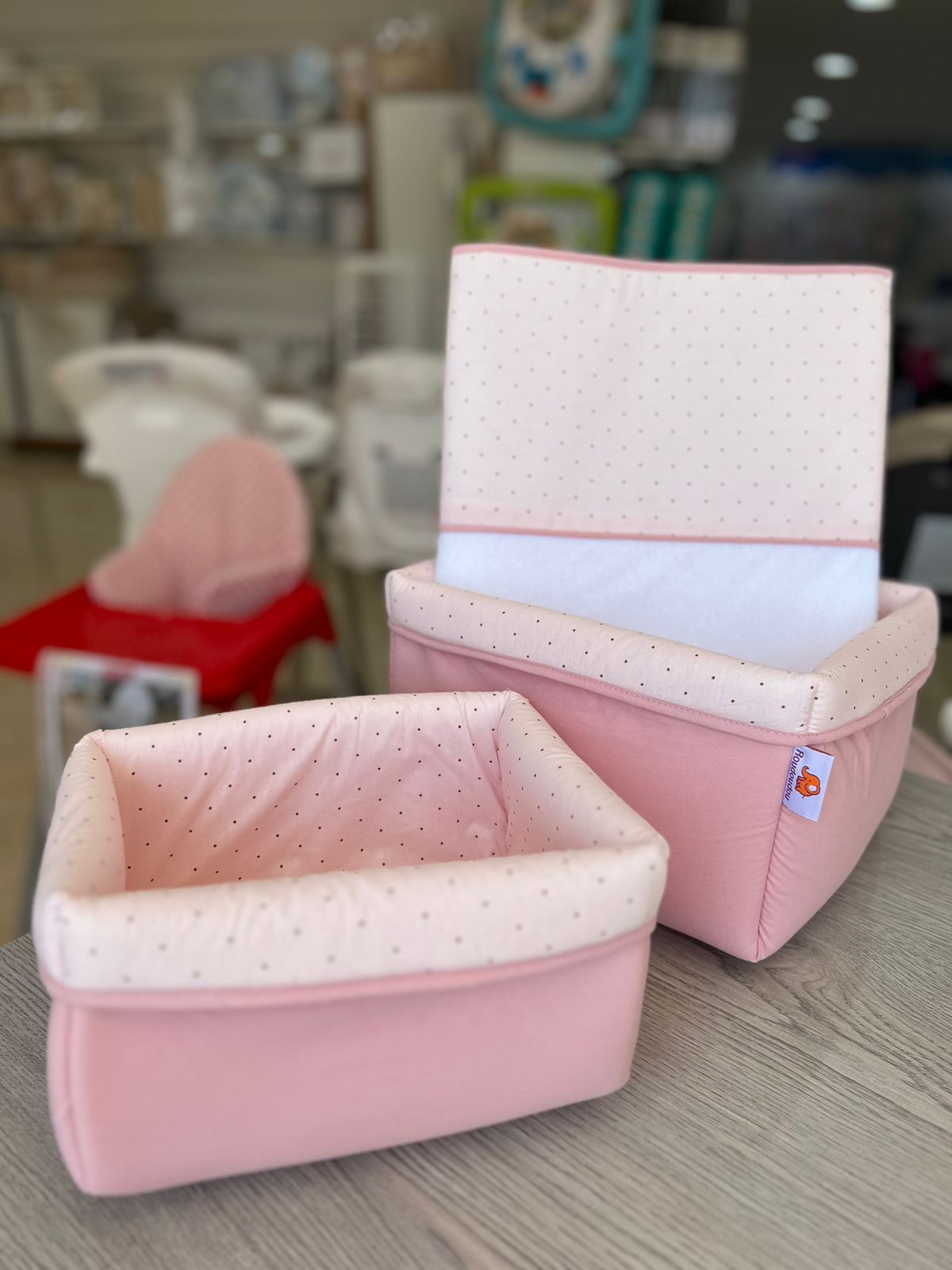 Un panier de rangement au tissu extérieur doux et à l’intérieur imprimé d’adorables . Sa structure souple mais stable en fait un accessoire idéal pour ranger couches, produits de soin ou petits vêtements.Panier rectangulaire: