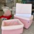 Ce second panier, assorti dans les mêmes tons naturels, présente un imprimé intérieur . Sa forme plus allongée le rend pratique pour organiser les accessoires du quotidien ou les jouets de bébé.