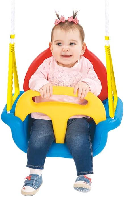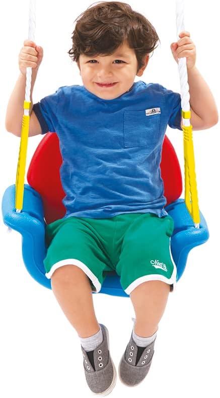 La balançoire qui grandit avec vous ! Elle peut servir de balançoire pour bébé, de chaise pivotante ou de siège de balançoire. Elle se transforme facilement et sans outils. À partir de 12 mois.