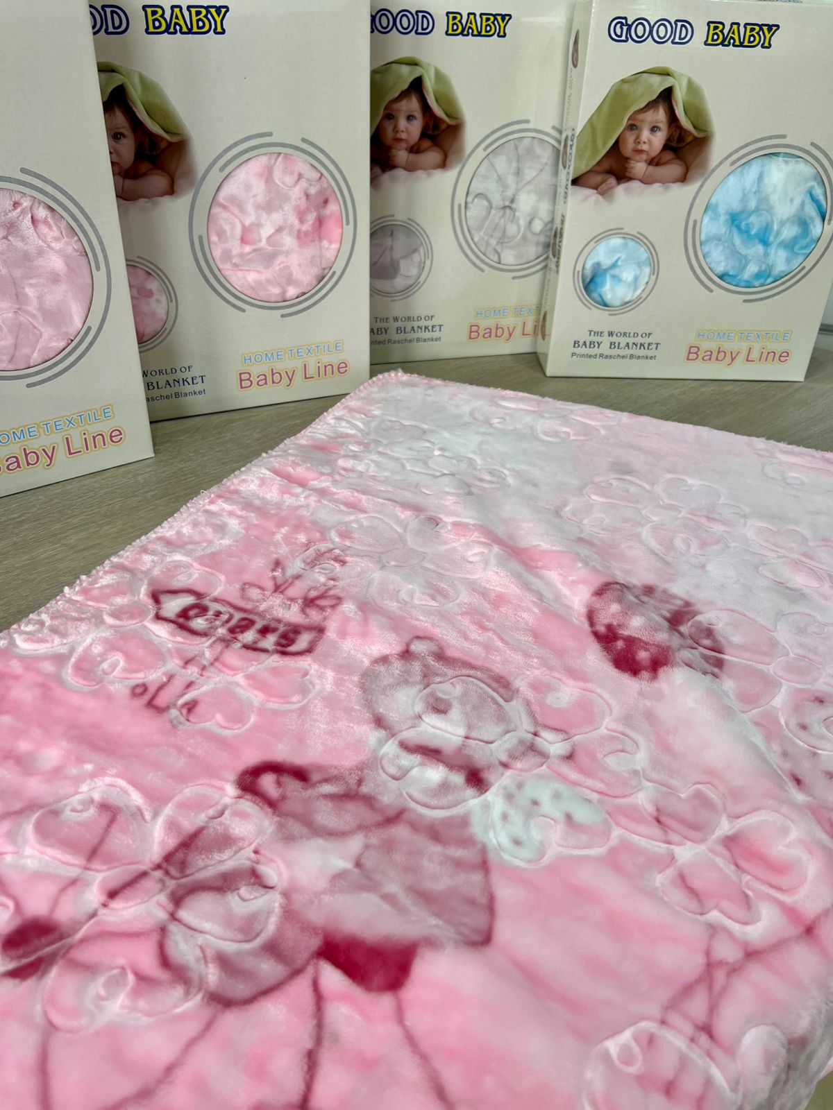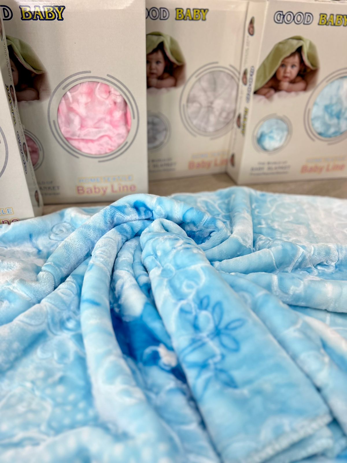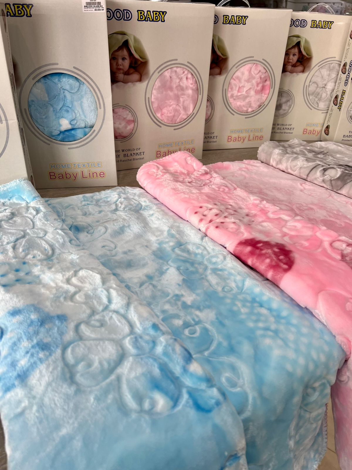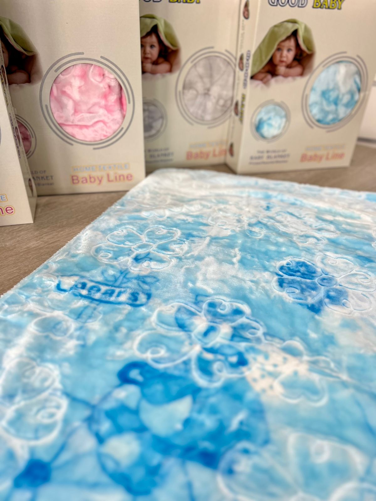 Disponible en quatre couleurs sublimes – bleu, rose, beige et gris