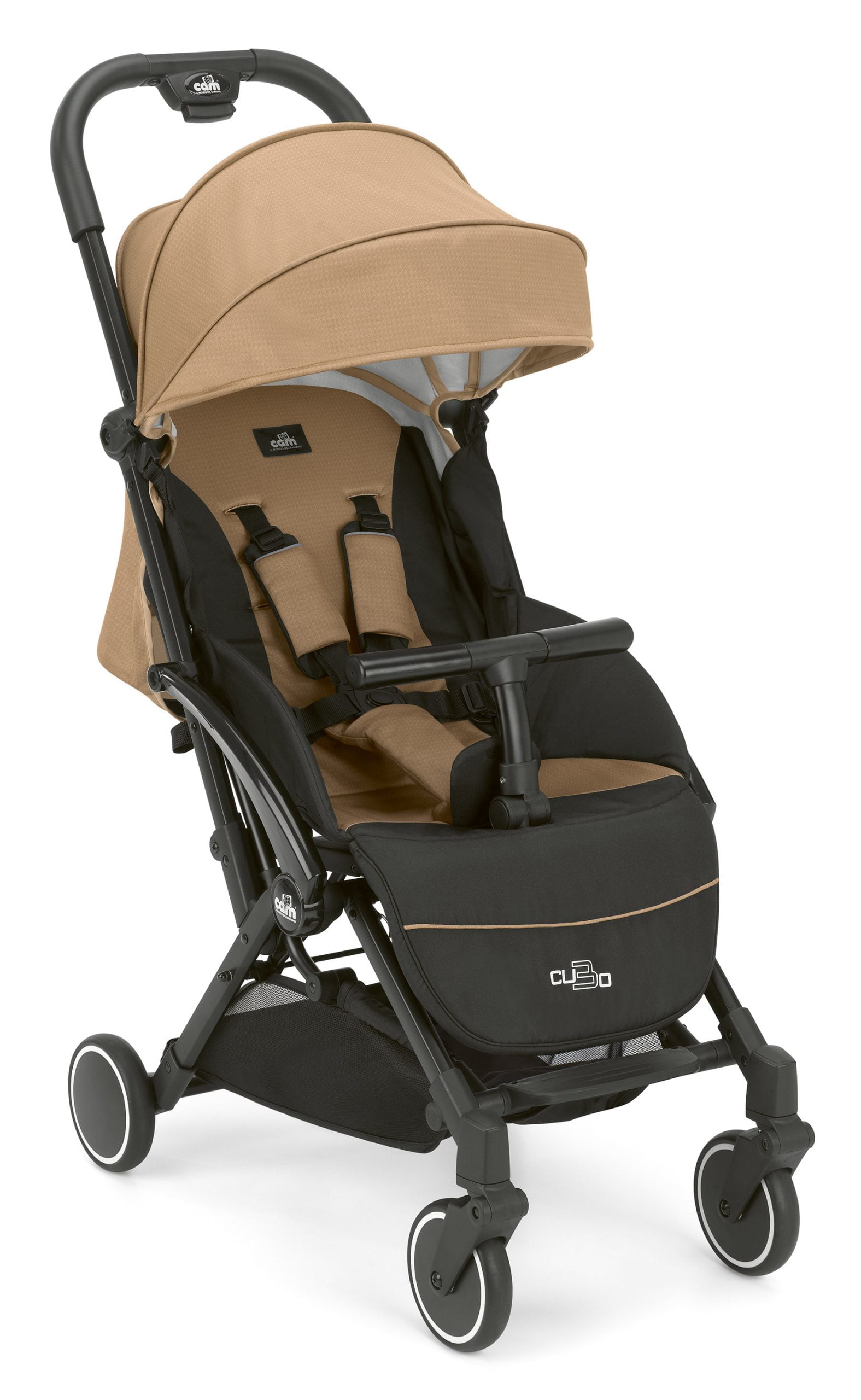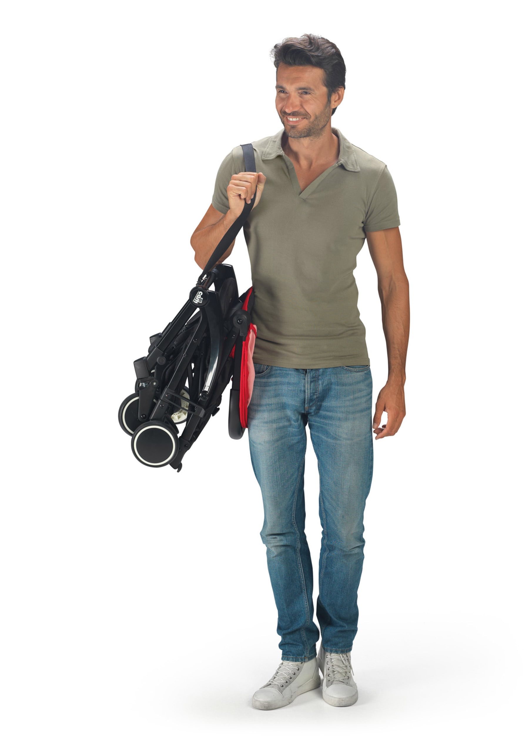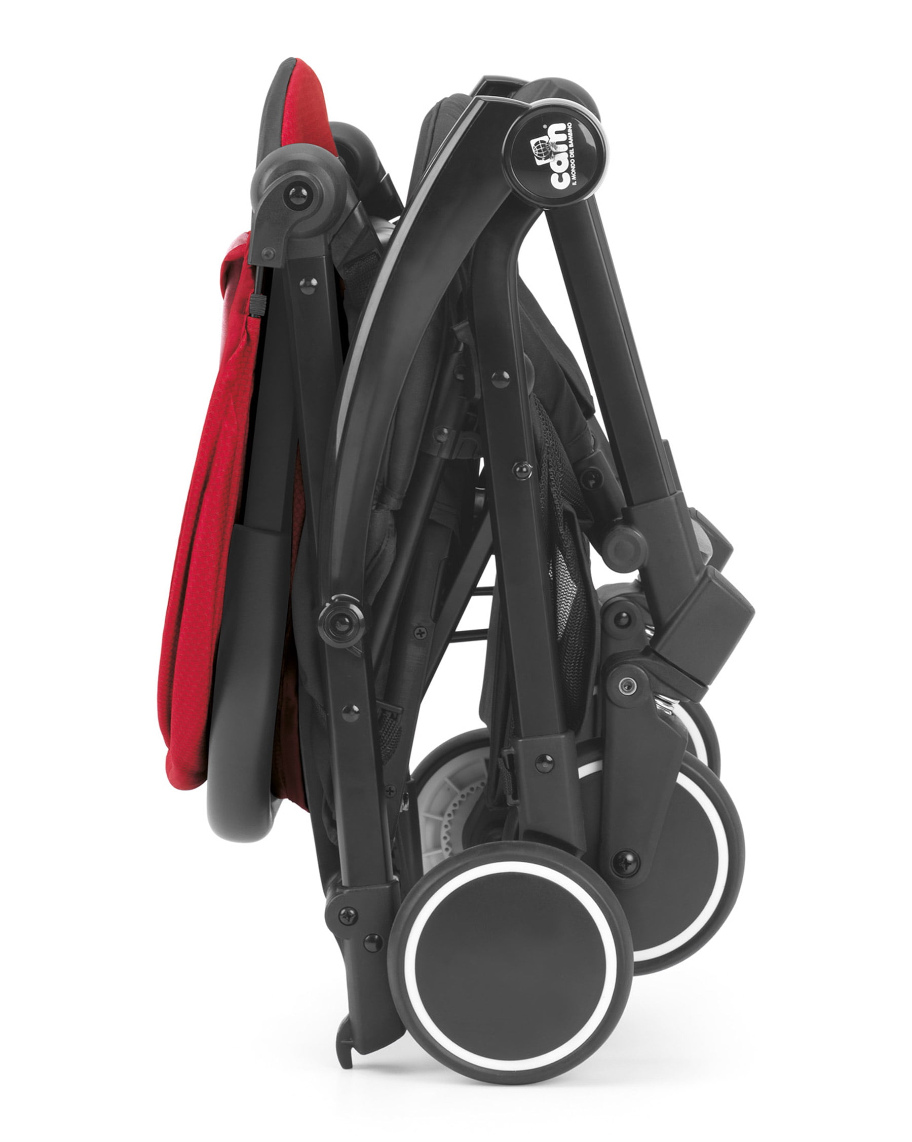 Léger (seulement 6,8 kg) et ultra-compact (seulement 54 cm), avec cadre en aluminium, dossier multiposition utilisable dès la naissance, assise large et profonde, poignée articulée avec système de fermeture à une main, davantino amovible et verrouillable, roues pivot avant, pédale de frein centralisée, suspension avant et arrière souple, sangle à 5 points, bretelles et culotte rembourrées, sangle de transport, panier. Fermeture ultra-compacte; fermé se tient seul. À la discrétion de la compagnie aérienne, il peut être rangé dans les boîtes à chapeaux des avions.