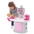 - Micro-ondes pour réchauffer la bouillie de bébé, un robot, un bol servant en même temps de verre doseur ; un réfrigérateur pour le lait et d’autres aliments, un petit évier à robinet, un siège de poupée intégré dans lequel la poupée préférée sera nourrie