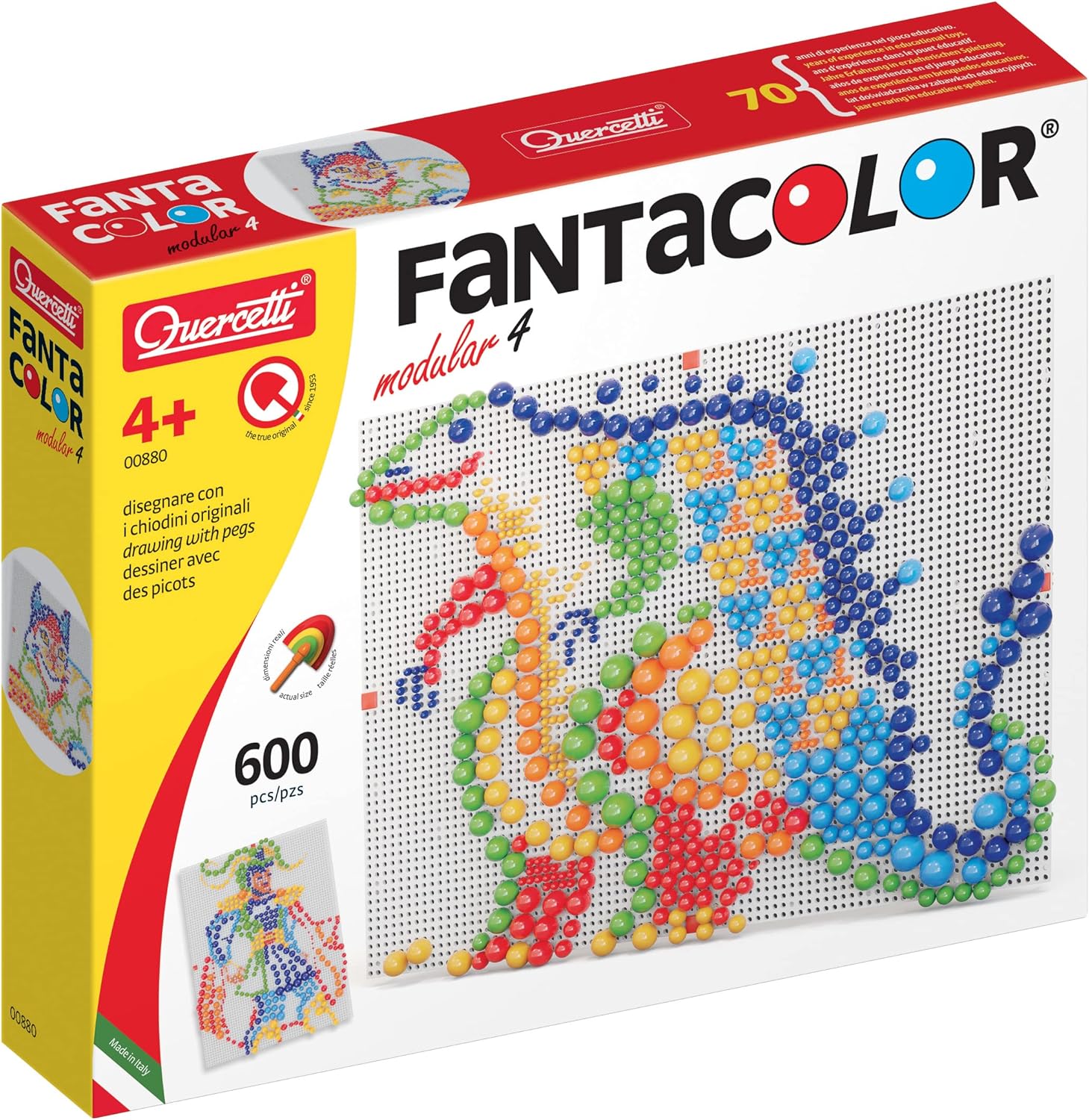 - JEU DE MOSAÏQUE PORTABLE POUR DÉVELOPPER LA CRÉATIVITÉ – Fantacolor Modular 4 de Quercetti est un jeu de mosaique enfant compact et transportable qui stimule la créativité. Grâce à ses clous colorés à insérer dans une tablette perforée, il favorise la motricité fine. Idéal comme cadeau fille 4 ans, cadeau fille 5 ans, cadeau fille 6 ans, cadeau fille 7 ans, cadeau fille 8 ans.