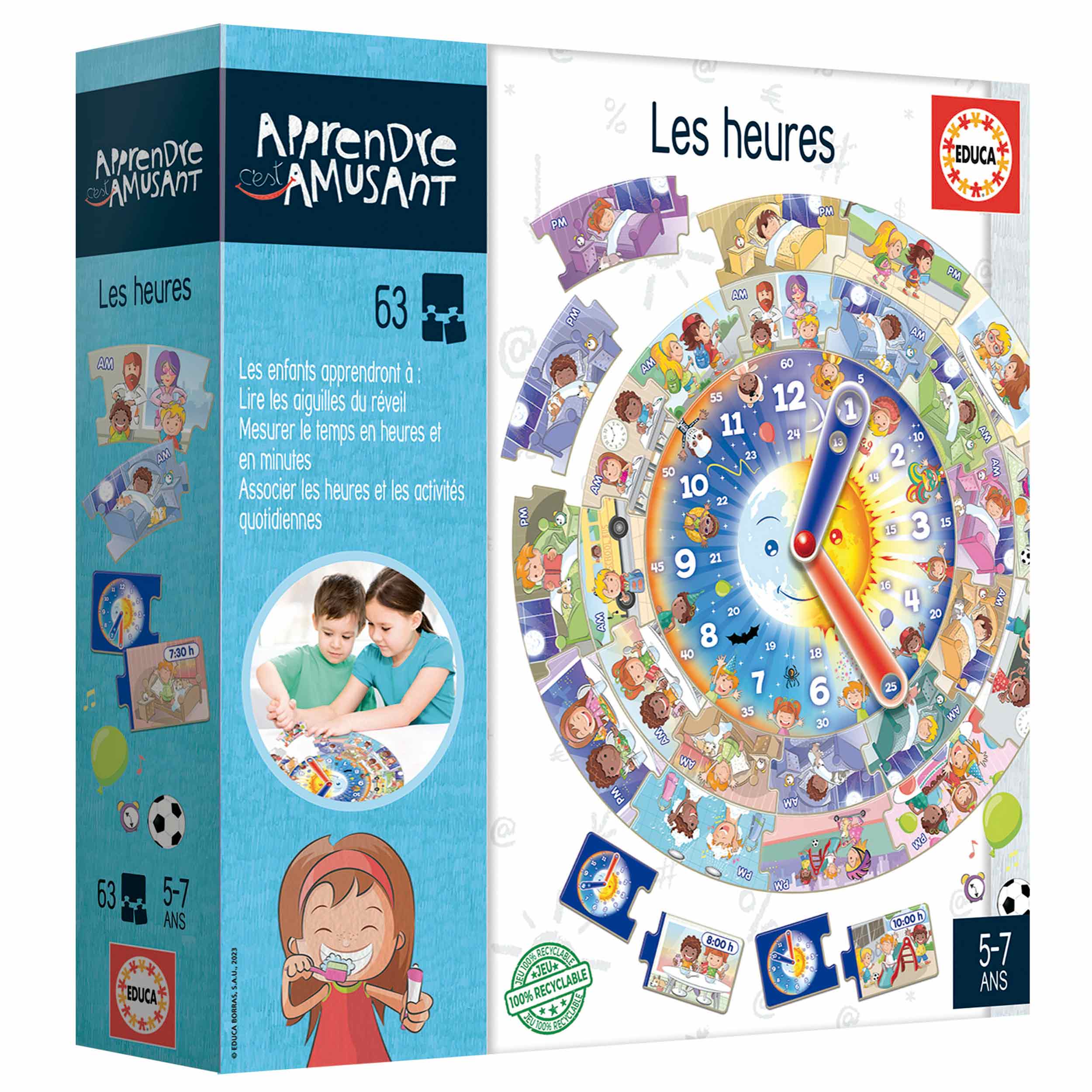 Initiation à l’utilisation de la montre comme outil quotidien. Apprentissage à lire l’heure sous forme analogique et numérique. Se familiariser avec leurs habitudes quotidiennes. CONTENU: 1 horloge à monter, 39 pièces d’heure et de scène pouvant être ajustées autour de l’horloge, 12 paires de pièces d’heure analogiques et numériques L’ENFANT APRENDRA A : Lire les aiguilles de l’horloge Mesurer le temps en heures et en minutes Associez les heures aux activités quotidiennes.