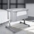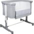 De 0 à 6 mois. Cadre en acier. Pliage très réduit. Comprend 4 roues, matelas avec housse, sac de transport et sangle de sécurité pour la fixation au lit. Textile amovible et lavable. Hauteur réglable en 5 positions. Côté avec textile respirant et pliable. Pieds extensibles à placer à côté du lit