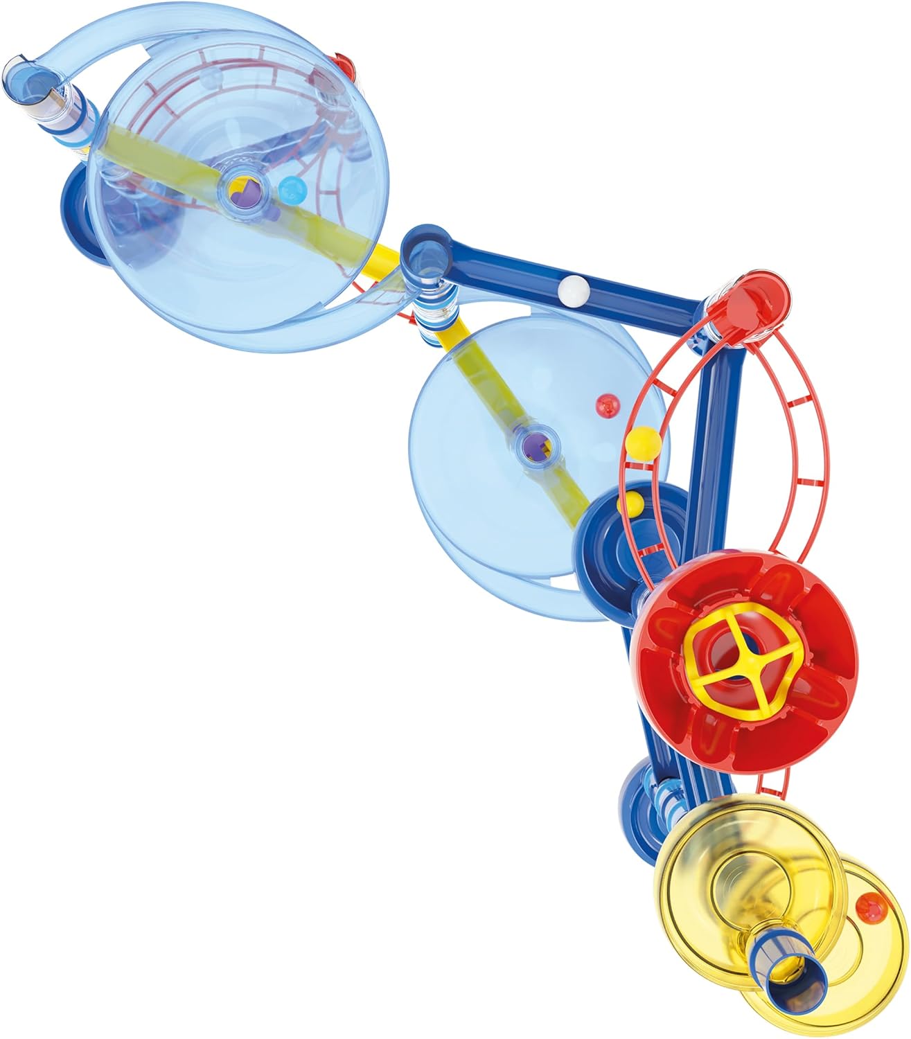 • Toboggan, ponts, colonnes, spirales, toutes les pièces s’encastrent à l’infini. Défiez vos amis avec le lancement simultané jusqu’à 8 billes