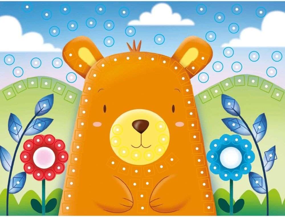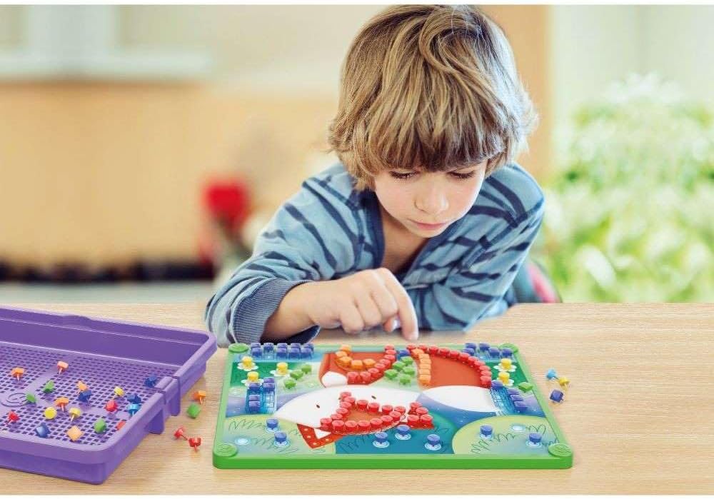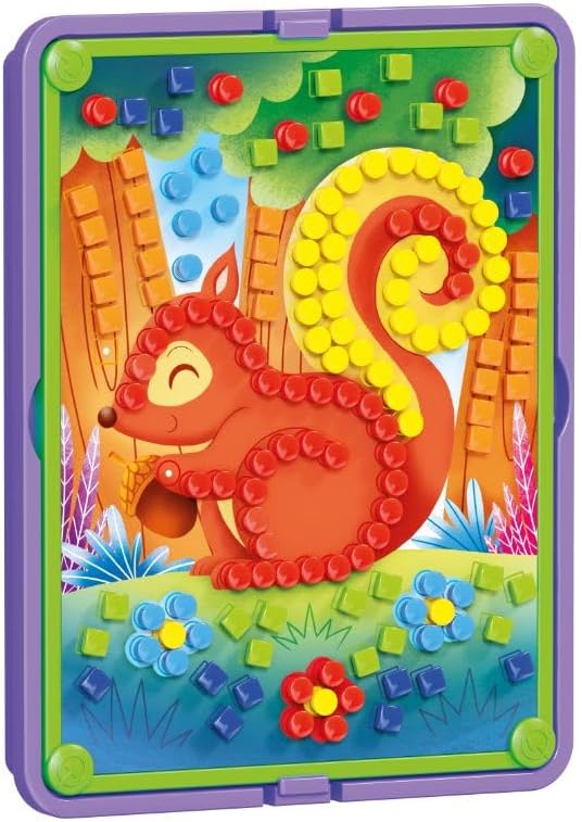 - À l’aide des 300 épingles colorées, rondes ou carrées, vous pouvez percer les 8 fiches illustrées, en suivant la couleur visible en dessous pour créer de magnifiques mosaïques. Le cadre mettra votre œuvre d’art en valeur et le panier vous permettra de ranger toutes les épingles en fin de journée. La création de mosaïques, en insérant les épingles dans les fiches, est une activité amusante et créative, qui stimule la sensibilité artistique et entraîne la coordination yeux-mains.