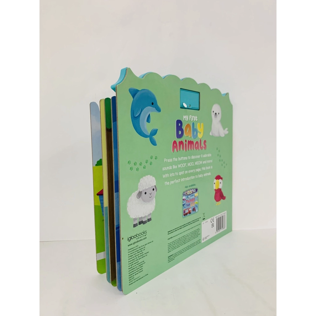 But the magic doesn’t stop there! « My First Baby Animals » features eight sparkling buttons embedded throughout the book. Each button corresponds to a different baby animal, and when pressed, it emits a delightful sound that captures the essence of that animal. Hear the playful barks of puppies, the gentle purrs of kittens, the cheeping of chicks, and other enchanting sounds that will make the reading experience truly immersive and engaging.