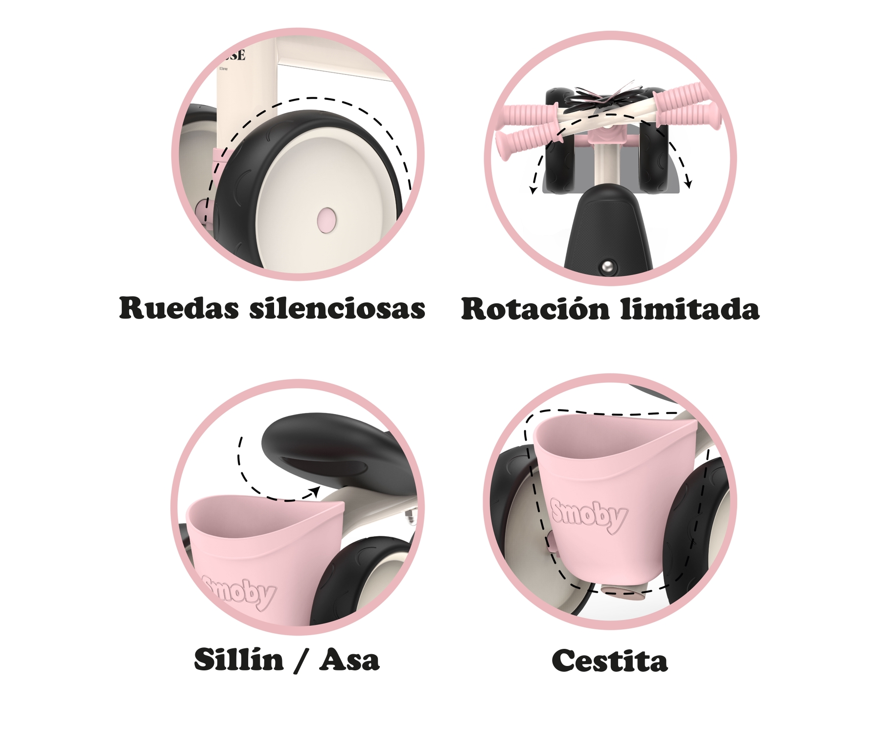 Le porteur en métal Rookie, ici dans une version Minnie élégante, est un porteur 1er âge parfaitement adapté aux enfants dès 12 mois !