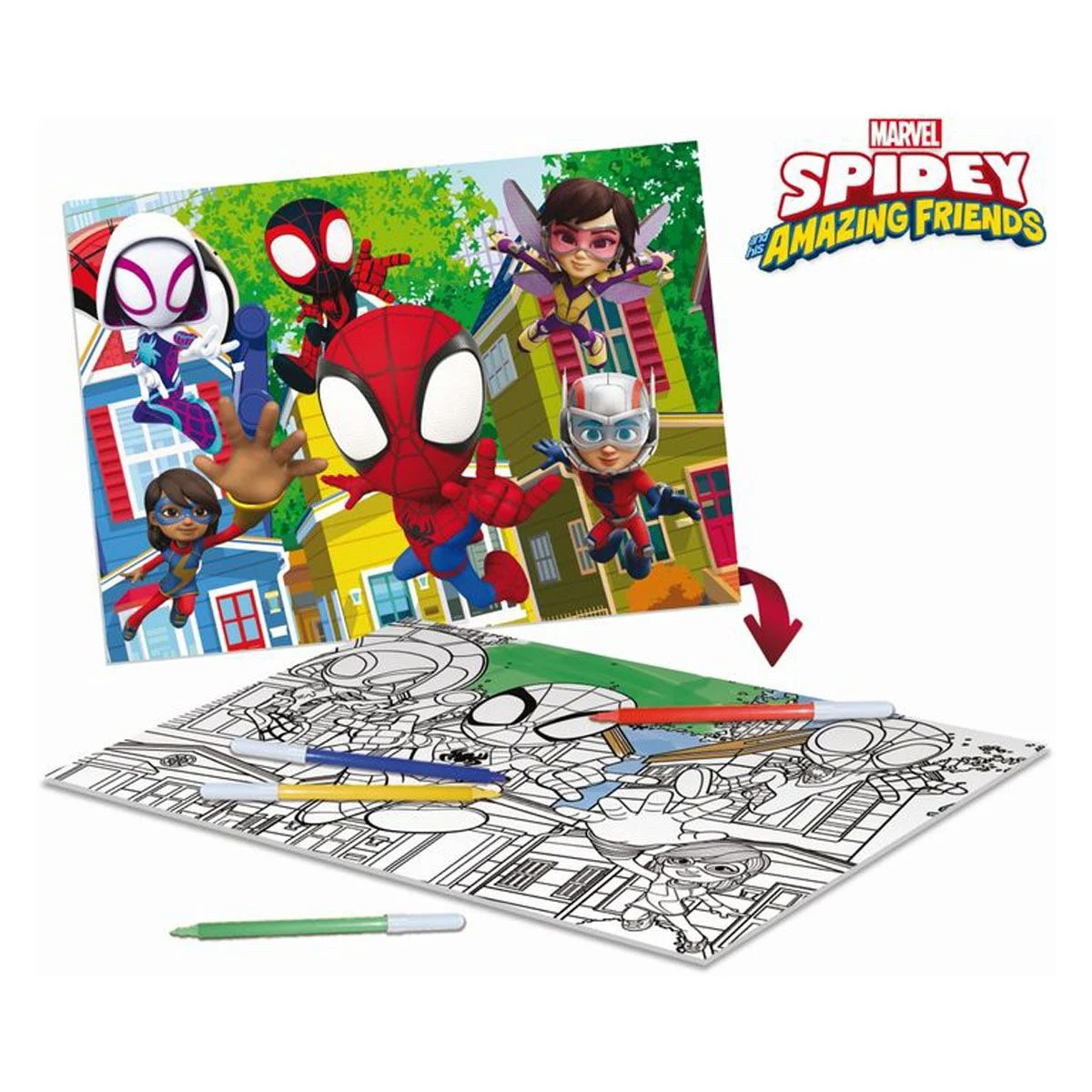 Un puzzle double face orné de personnages de dessins animés populaires.