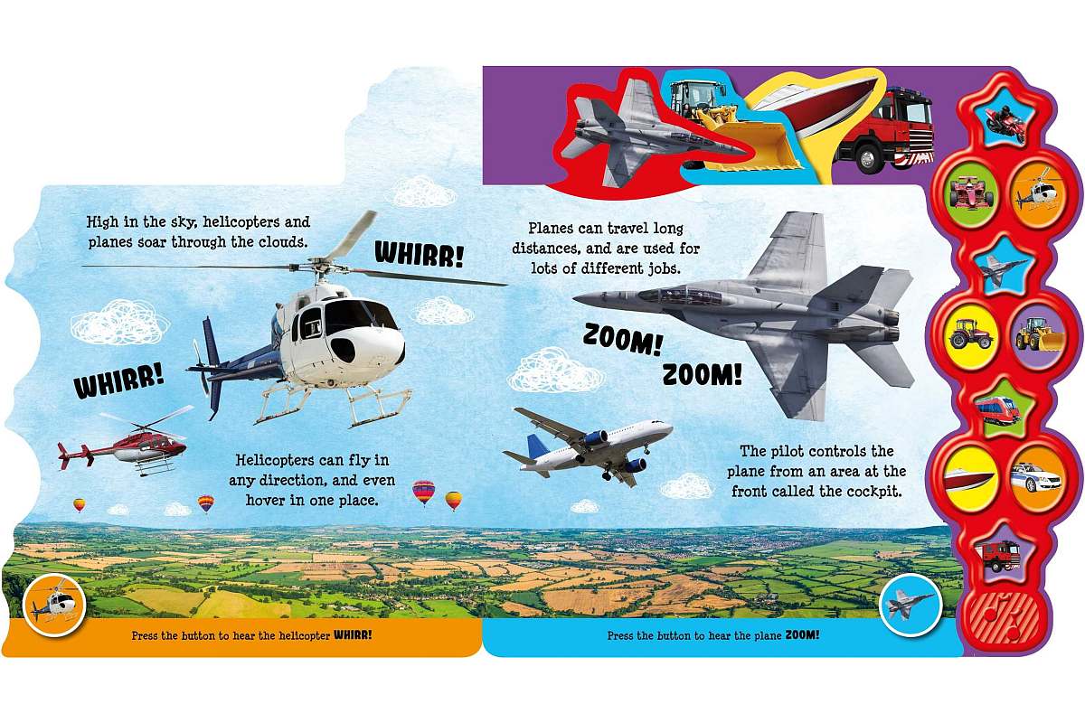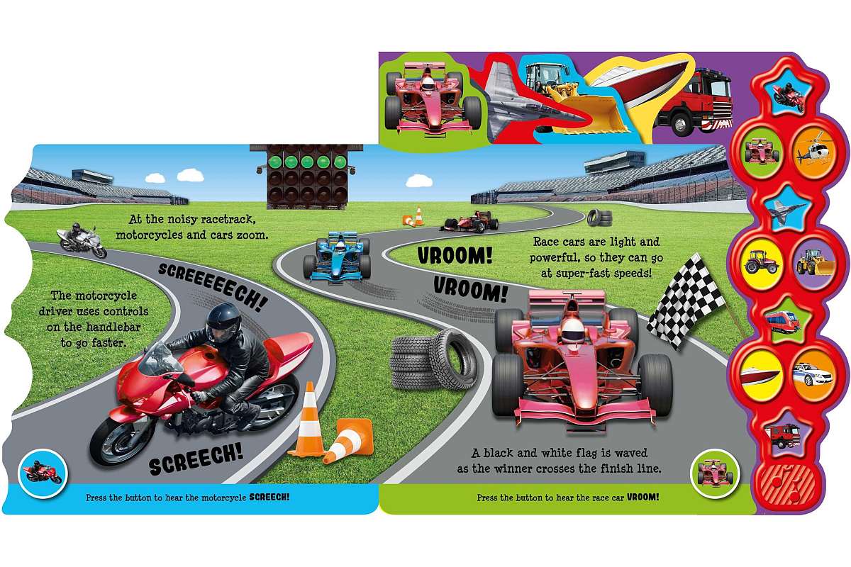 « Les véhicules en carton avec son » est un nouveau livre publié par Igloo Books. Ce livre regorge d’informations sur les véhicules, avec des photos amusantes, des onglets faciles à utiliser et 10 sons différents, du bip au vroom !