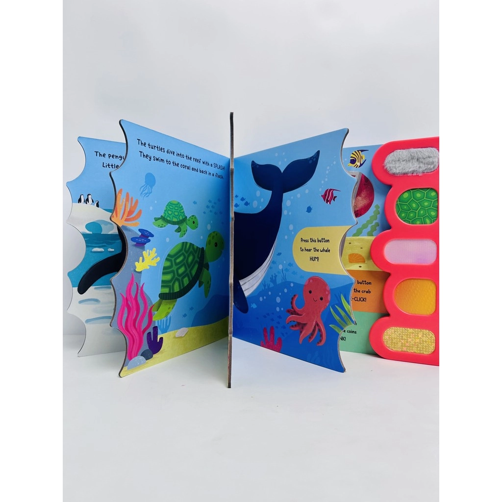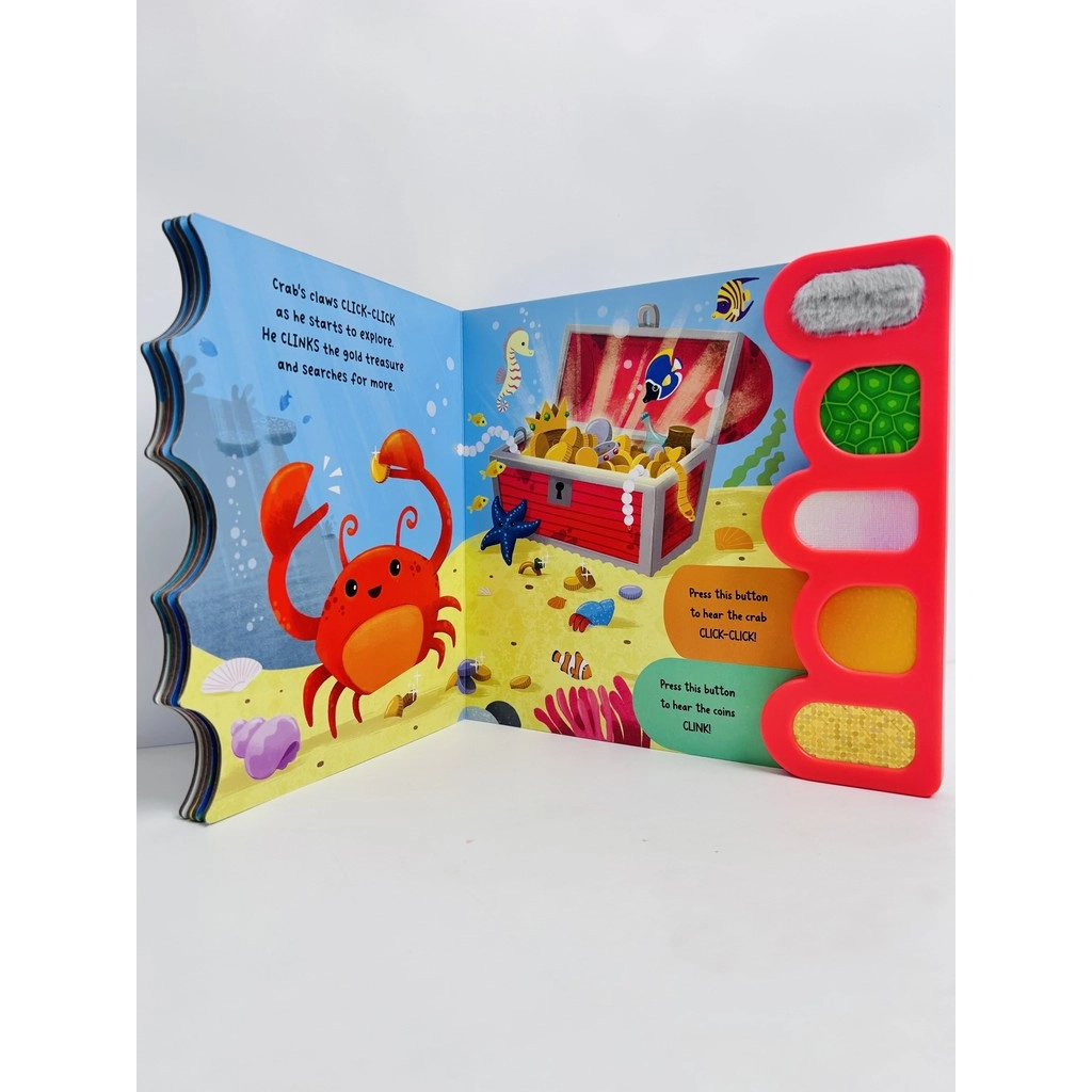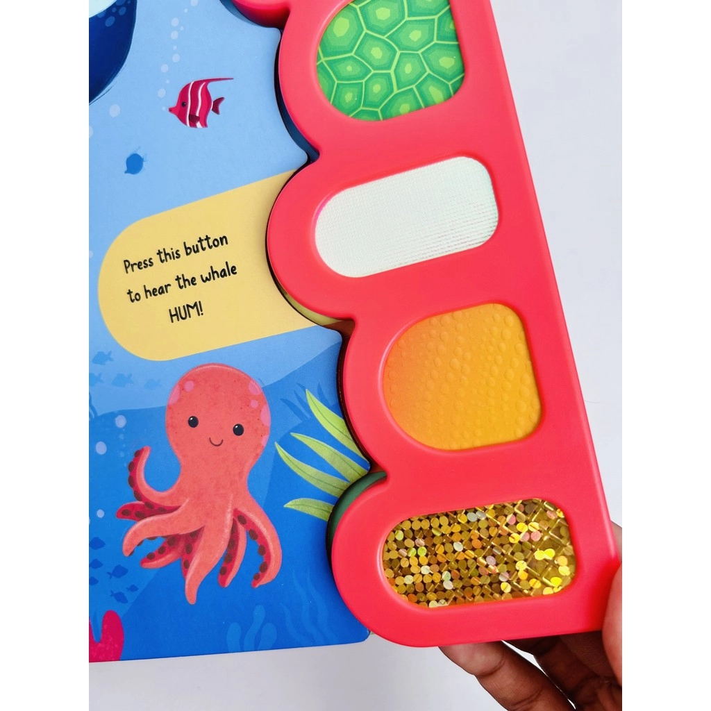 Join your favourite sea creatures on an exciting journey beneath the waves! With 5 sound buttons, each paired with a unique touch-and-feel texture, little readers can press, touch, and listen as they explore the sights and sounds of the ocean. From the click-clack sound from the crab to the splash of a swimming turtle, every page is packed with noisy surprises that encourage hands-on learning and sensory exploration.
