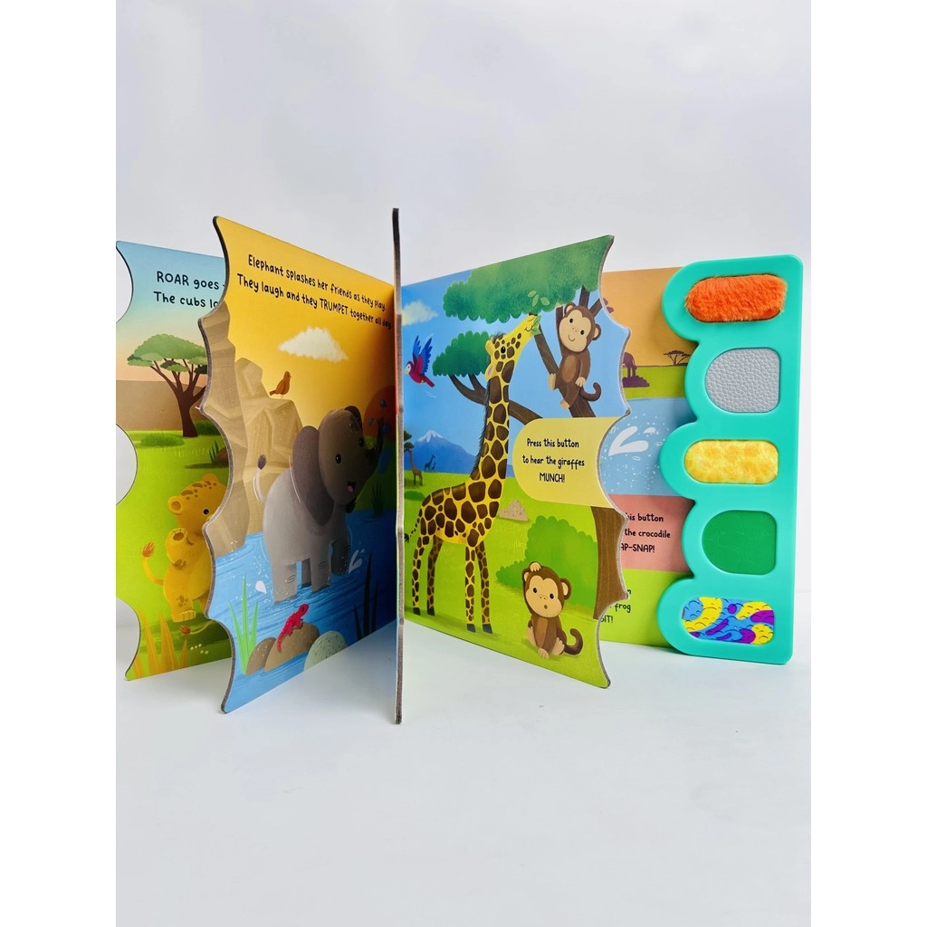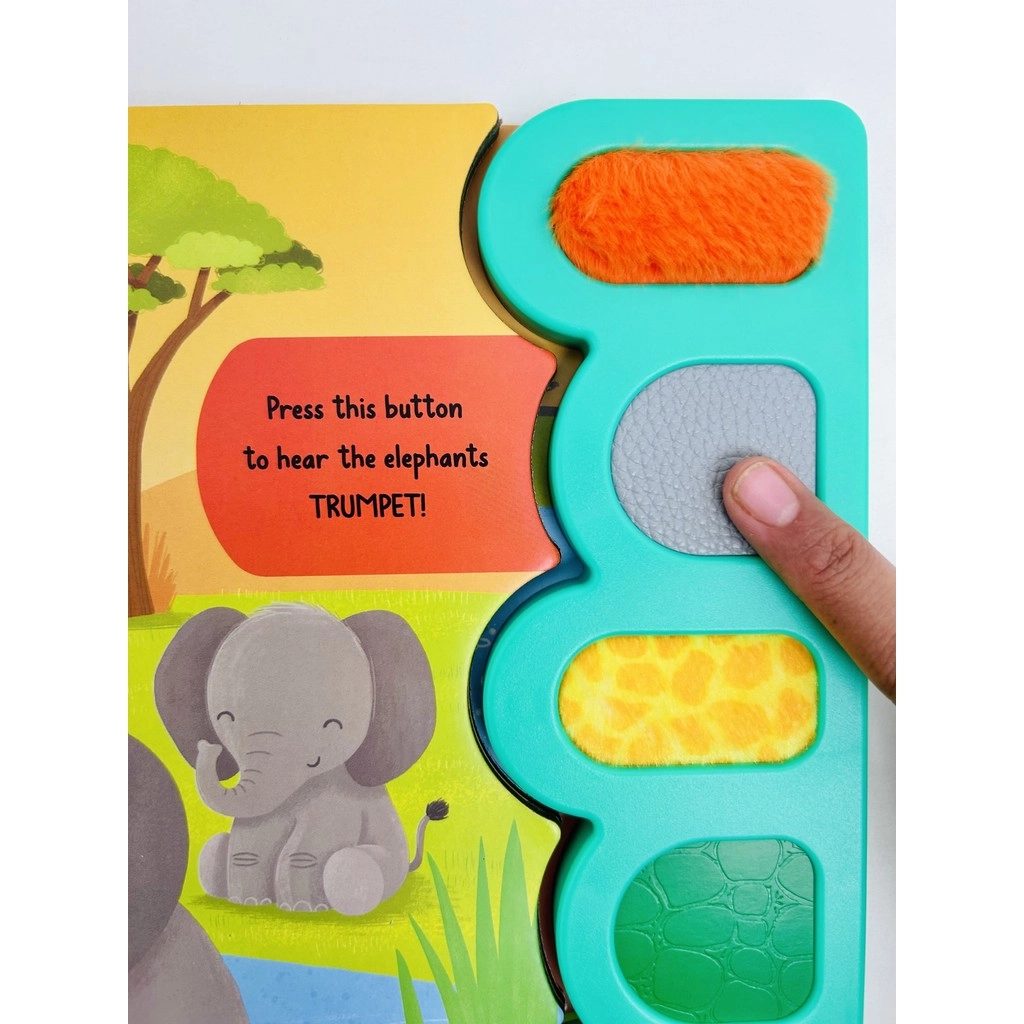 Little ones will love discovering the sights, sounds, and textures of the safari as they meet five incredible animals from the African plains. With 5 sound buttons, each featuring a unique sensory texture, children can press to hear realistic safari sounds and touch the textured panels for a full sensory adventure. From the roaring lion to the trumpeting elephant, each animal brings the savannah to life with sights and sounds that engage, entertain, and educate.