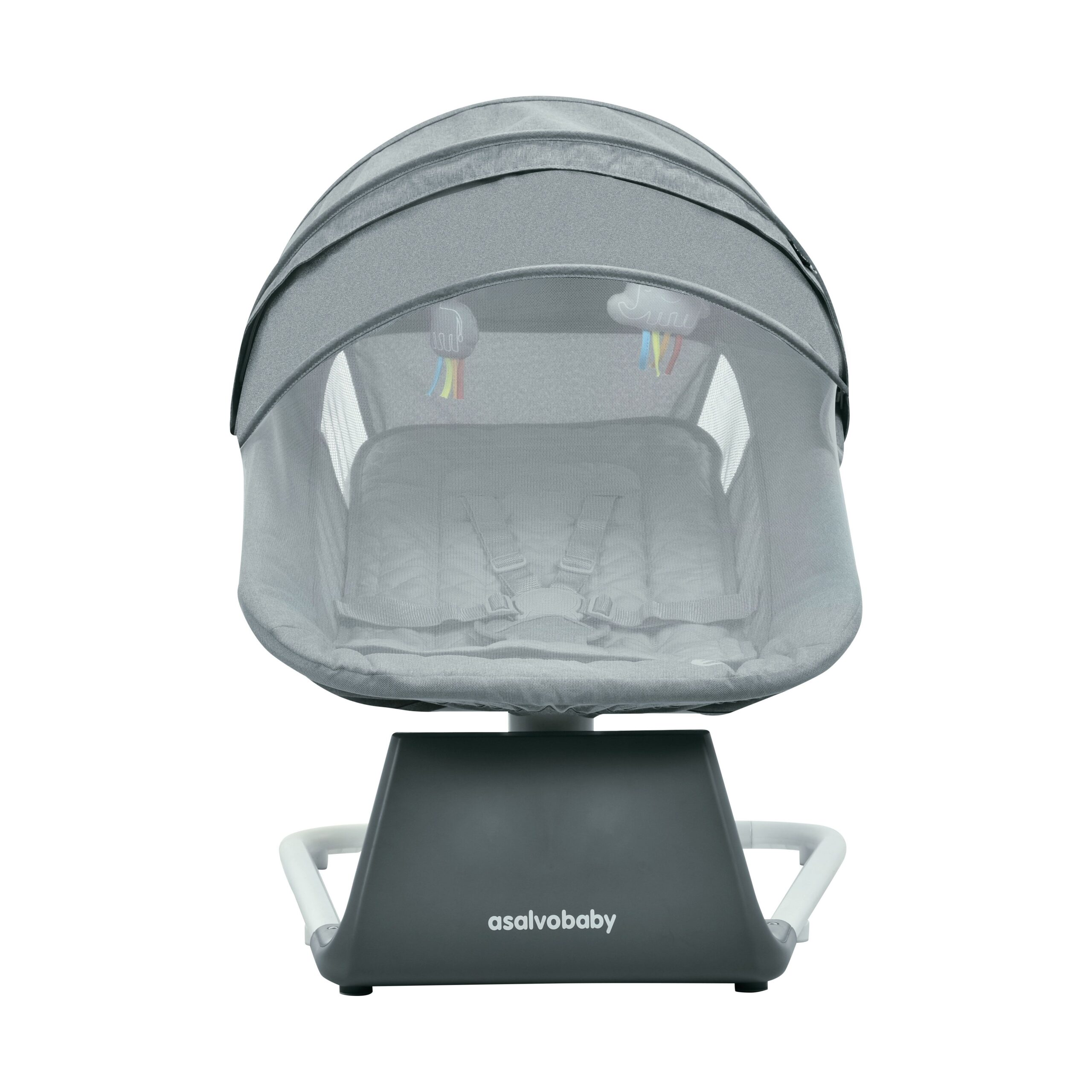 Il se balance latéralement, imitant le mouvement des bras des parents. Il est équipé d’une minuterie, d’une moustiquaire et d’un harnais à 5 points pour plus de sécurité. Fabriqué avec une structure robuste en aluminium, le siège est large et rembourré, avec un dossier inclinable pour un confort optimal. Il est équipé d’un panneau de commande tactile permettant de régler la durée d’utilisation, la vitesse de balancement, le son et le volume, et est alimenté par câble. De plus, il comprend deux jouets et une connectivité Bluetooth pour la télécommande.